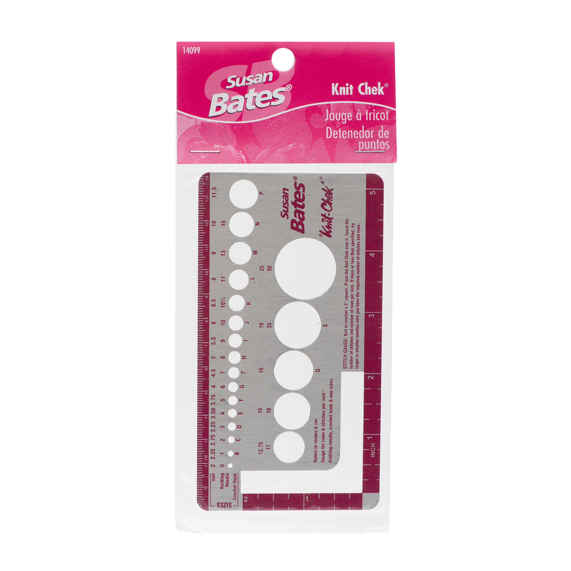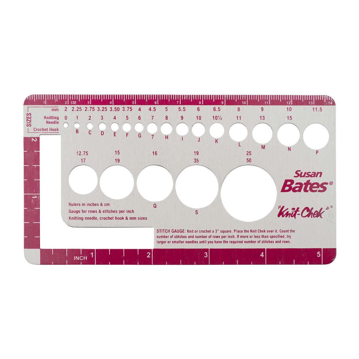 Susan Bates Knit Chek is a handy tool to check your stitch and row gauge for both knitting and crochet. It now has an extended size range!