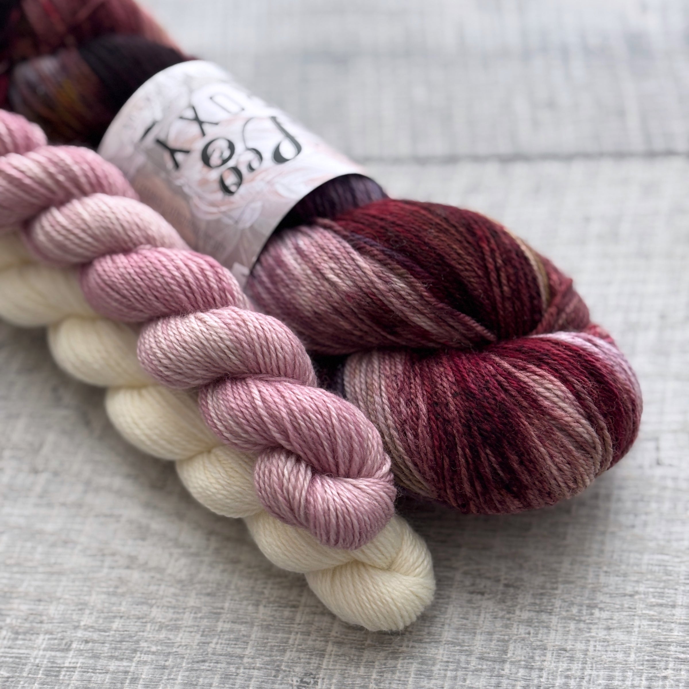 80/20 Sock Sets include: 1 skein (113g) of main colour and some minis (20g/each) of a contrasting colour in 80/20 Superwash Wool/Nylon OR a bunch minis.