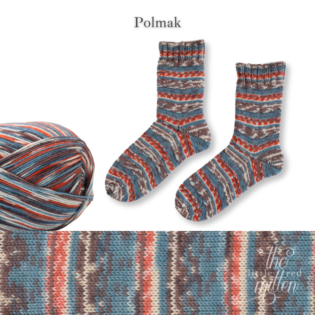 Arne & Carlos have now developed a sock yarn collection that picks up on their iconic designs and patterns, and transfers them to a beautiful sock yarn with 75% virgin wool and 25% recycled nylon. The colours and effects of the collection are characterised by ingenious colour gradients and patterns that automatically create an interesting design when knitted, without any colour changes or complicated techniques.